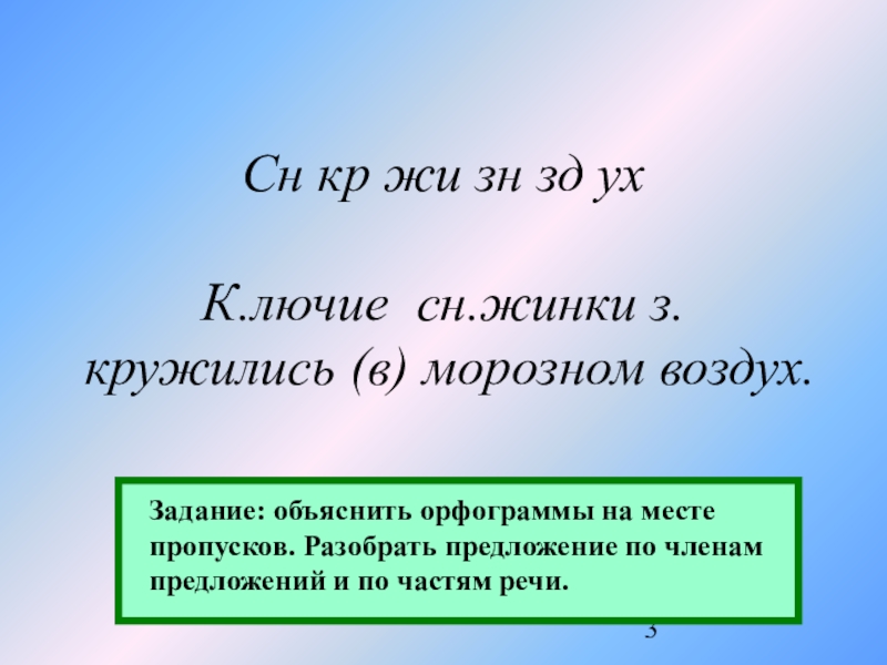 пропусков. Разобрать предложение по членам предложений и по частям речи.