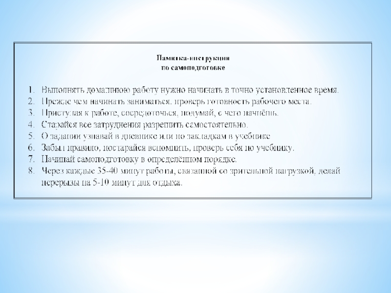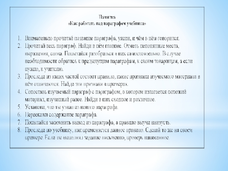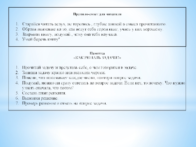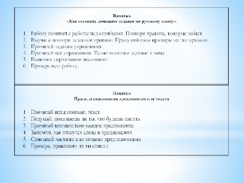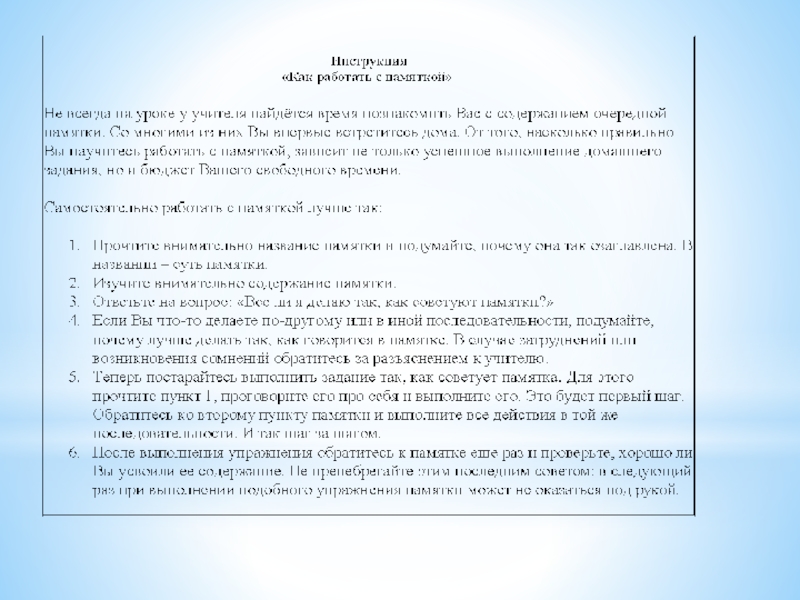 Использование различных методических рекомендаций, памяток помогает обучающимся быстрее овладеть необходимыми умениями, усвоить определенный порядок действий и некоторые общие способы организации своей деятельности.