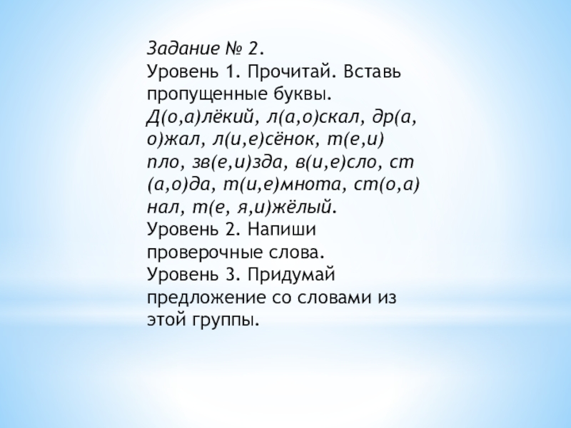 Уровень 1. Спиши. Вставь пропущенные буквы.