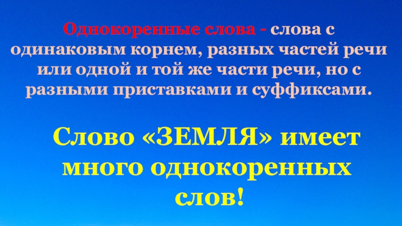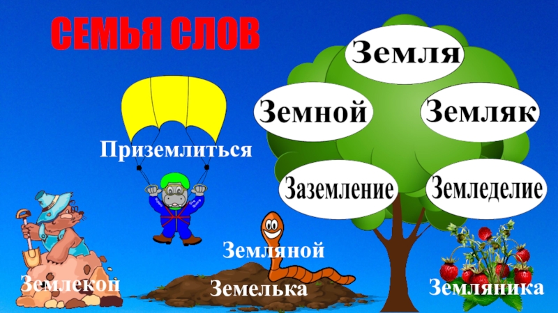 Слово «ЗЕМЛЯ» имеет много однокоренных