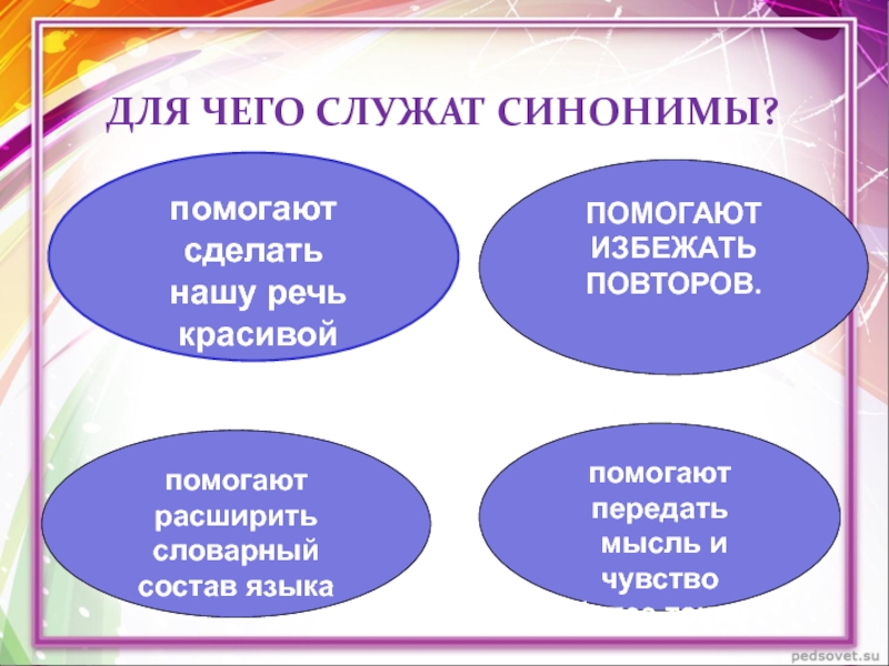 Для повышения выразительности речи, помогают избегать повторов.
