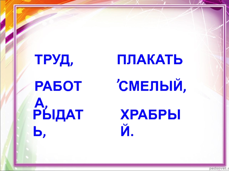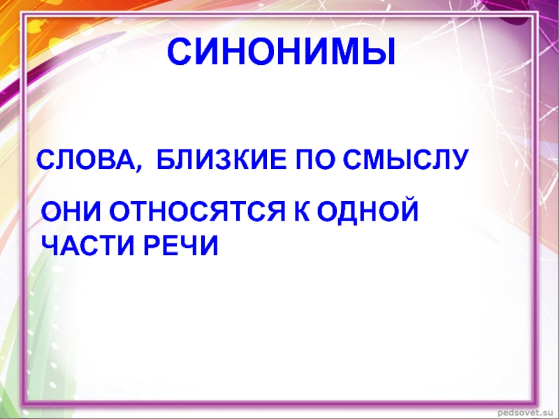 Близкие по смыслу, относятся к одной части речи, но звучат и пишутся по-разному.