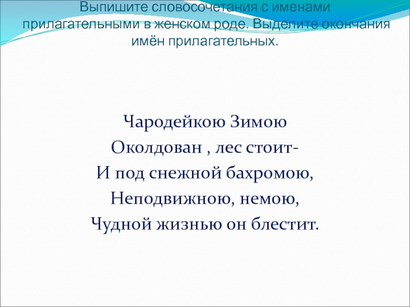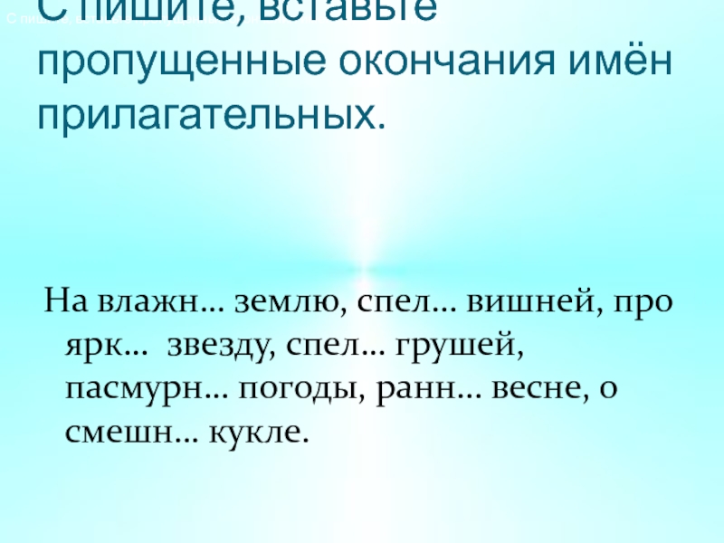 С пишите, вставьте пропущенные окончания имён прилагательных.