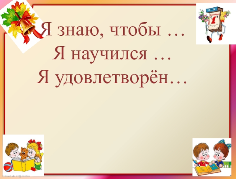 Я знаю, чтобы …Я научился …Я удовлетворён…