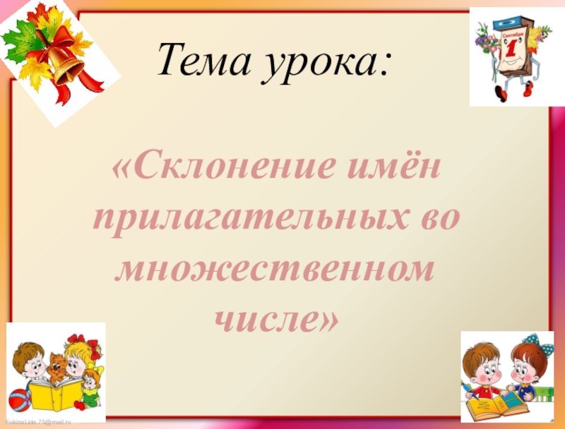 Тема урока:«Склонение имён прилагательных во множественном числе»