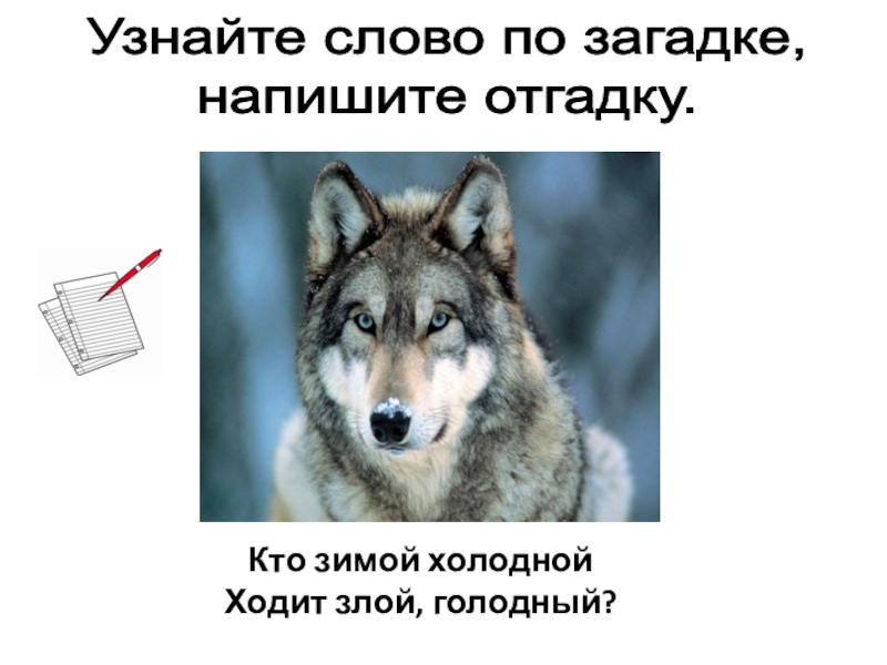 Узнайте слово по загадке,напишите отгадку.Кто зимой холодной  Ходит злой, голодный?
