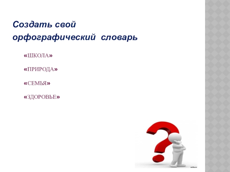 «школа»  «природа»  «семья»  «здоровье»Создать свой орфографический словарь