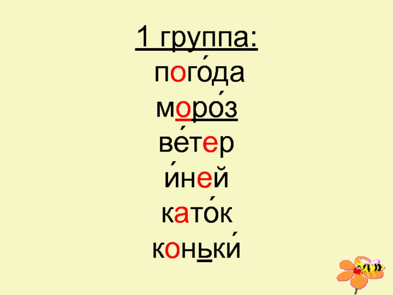1 группа:  пого́да моро́з ве́тер и́ней като́к коньки́