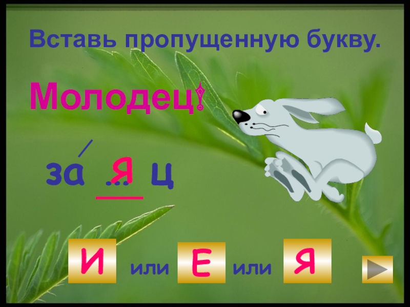 Вставь пропущенную букву.за … цИилиЕилиЯМолодец!я
