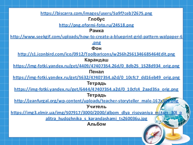 https://biscarra.com/images/users/5a9f7ceb72675.pngГлобусhttp://png.oformi-foto.ru/24518.pngРамкаhttp://www.seekgif.com/uploads/how-to-create-a-blueprint-grid-pattern-walpaper-6.pngФонhttp://s1.iconbird.com/ico/0912/ToolbarIcons/w256h2561346685464Edit.pngКарандашhttps://img-fotki.yandex.ru/get/4409/47407354.26d/0_8db25_1528d934_orig.pngПеналhttps://img-fotki.yandex.ru/get/5632/47407354.a2d/0_10cfc7_dd16eb49_orig.pngТетрадьhttps://img-fotki.yandex.ru/get/6444/47407354.a2d/0_10cfc4_2aad35a_orig.pngТетрадьhttp://jeanfurgal.org/wp-content/uploads/teacher-storyteller_male-167x300.pngУчительhttps://img3.elmir.ua/img/507917/3000/2000/albom_dlya_risovaniya_mizar+_30l_palitra_hudozhnika_s_karandashami_ts260036u.jpgАльбом