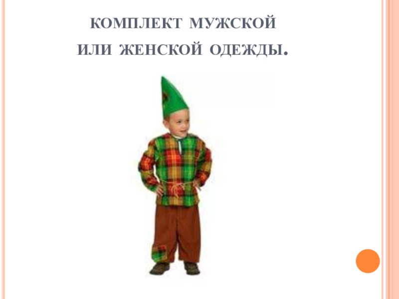 Слайд 6комплект мужской или женской одежды.