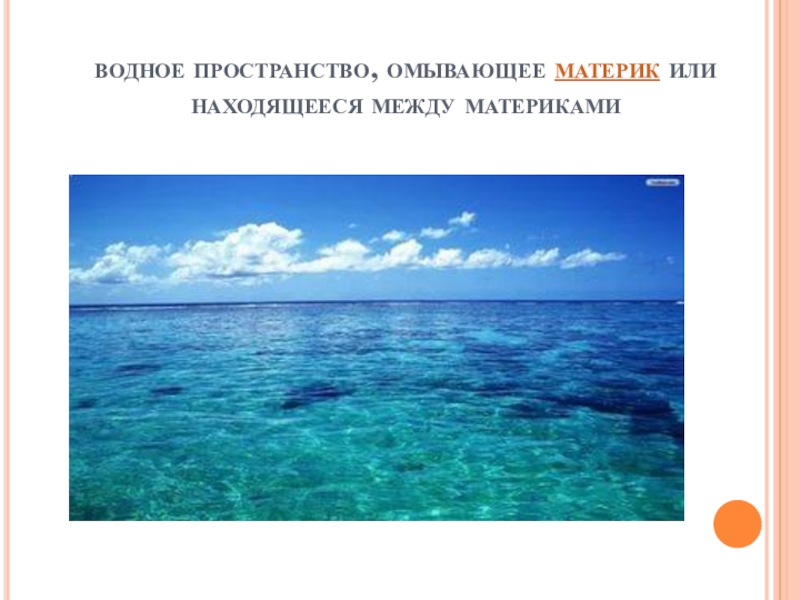 Слайд 8водное пространство, омывающее материк или находящееся между материками