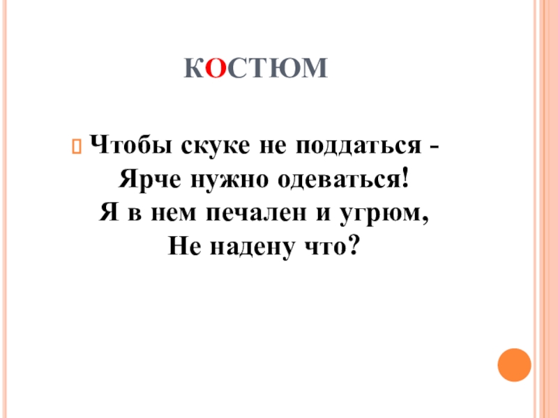 костюмЧтобы скуке не поддаться - Ярче нужно одеваться! Я в нем печален и угрюм, Не надену что?