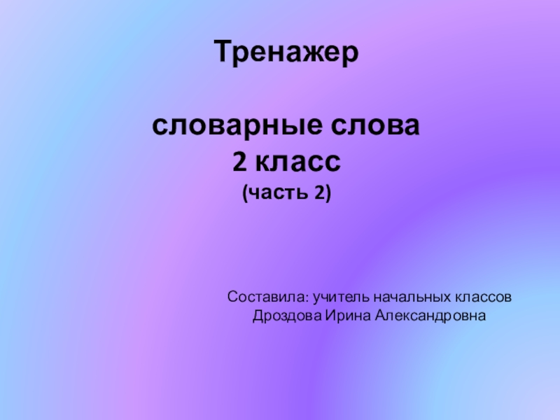 Тренажер  словарные слова 2 класс (часть 2)Составила: учитель начальных классов Дроздова Ирина Александровна