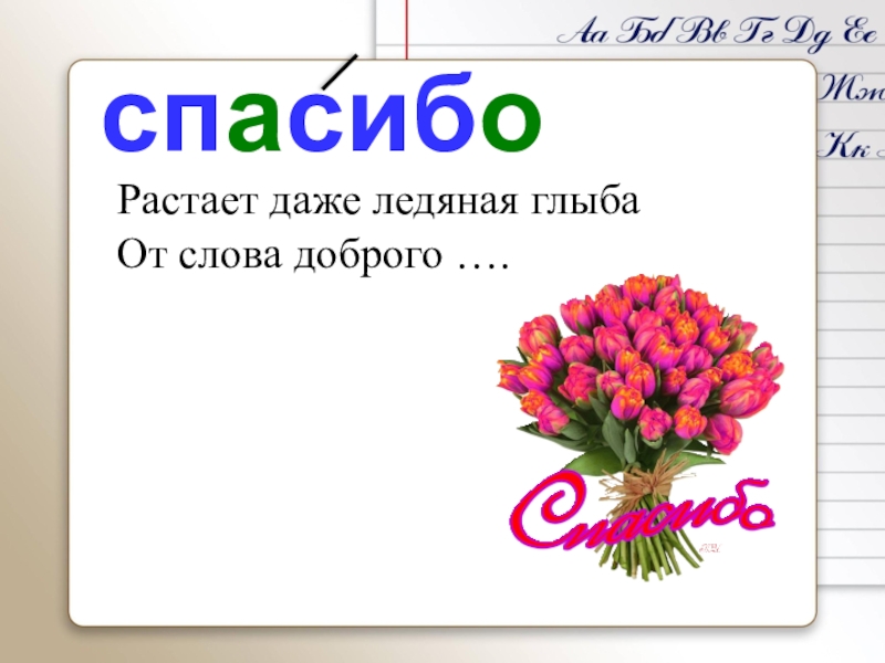 спасибоРастает даже ледяная глыбаОт слова доброго ….