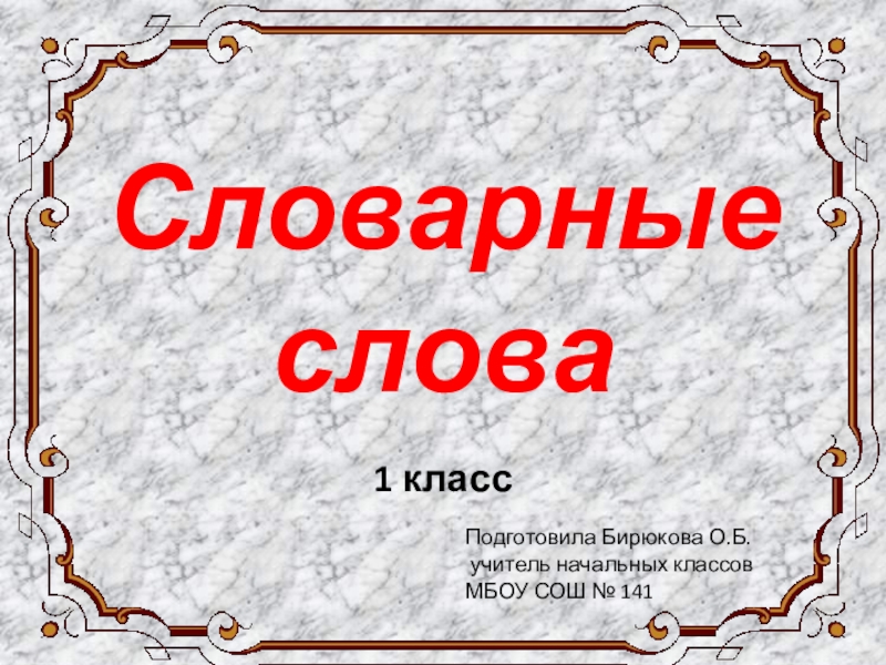 Словарные слова1 классПодготовила Бирюкова О.Б. учитель начальных классовМБОУ СОШ № 141