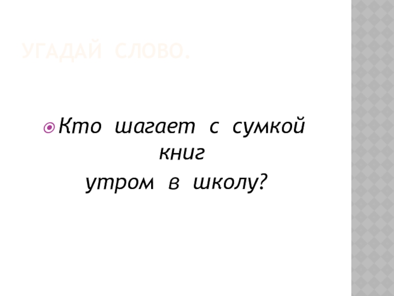 Угадай слово.Кто шагает с сумкой книгутром в школу?