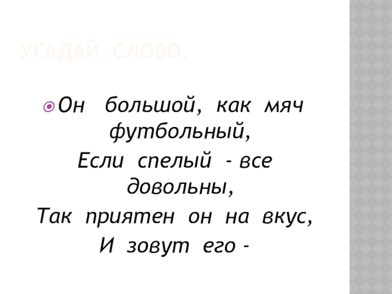 Угадай слово.Он  большой, как мяч футбольный,Если спелый - все довольны,Так приятен он на вкус,И зовут его