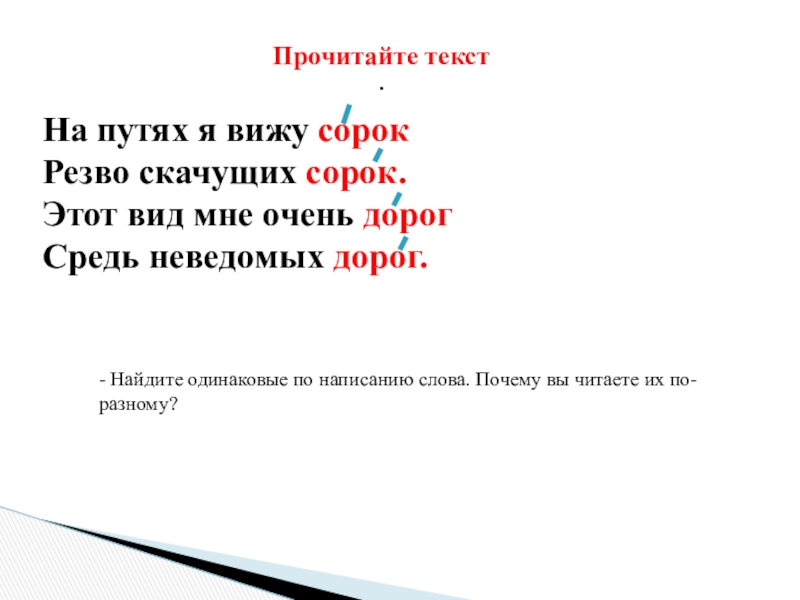 - Найдите одинаковые по написанию слова. Почему вы читаете их по-разному?
