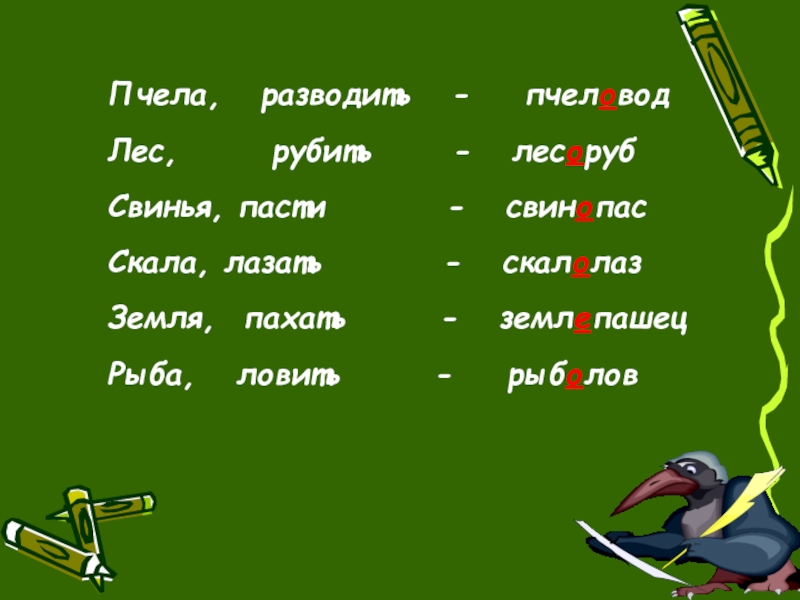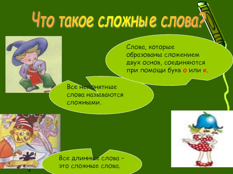 Слова, которые образованы сложением двух основ, соединяются при помощи букв о или е.