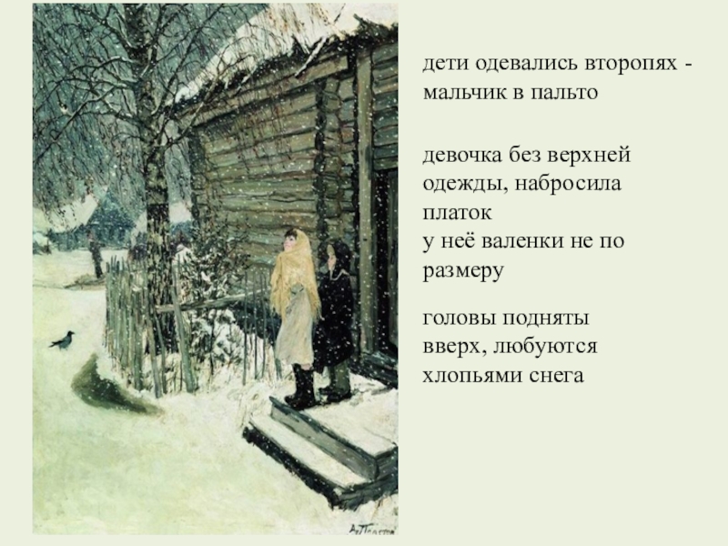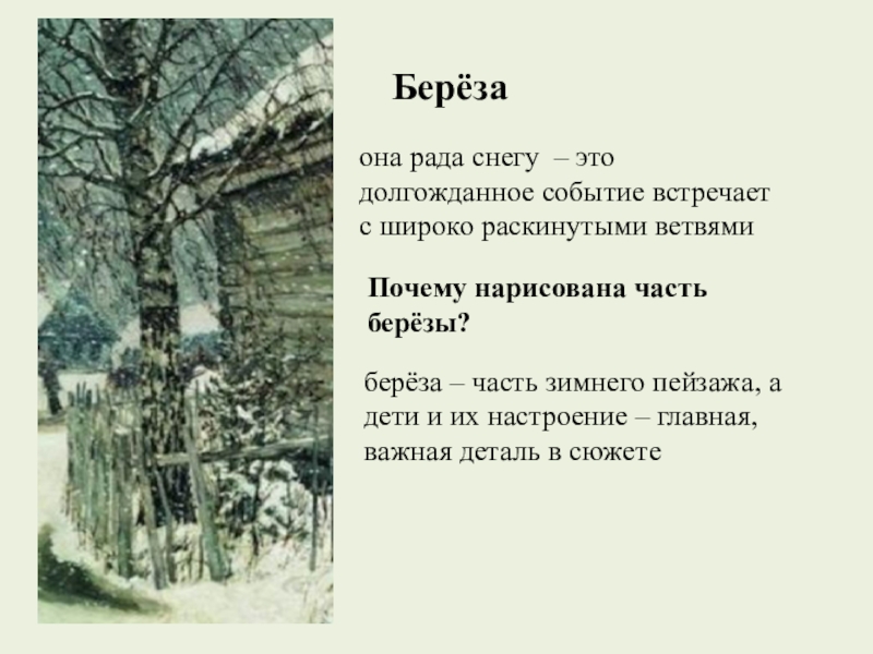 берёза – часть зимнего пейзажа, а дети и их настроение – главная, важная деталь в сюжете