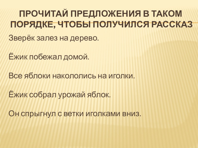Слайд 6Прочитай предложения в таком порядке, чтобы получился рассказ