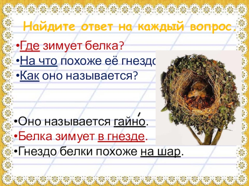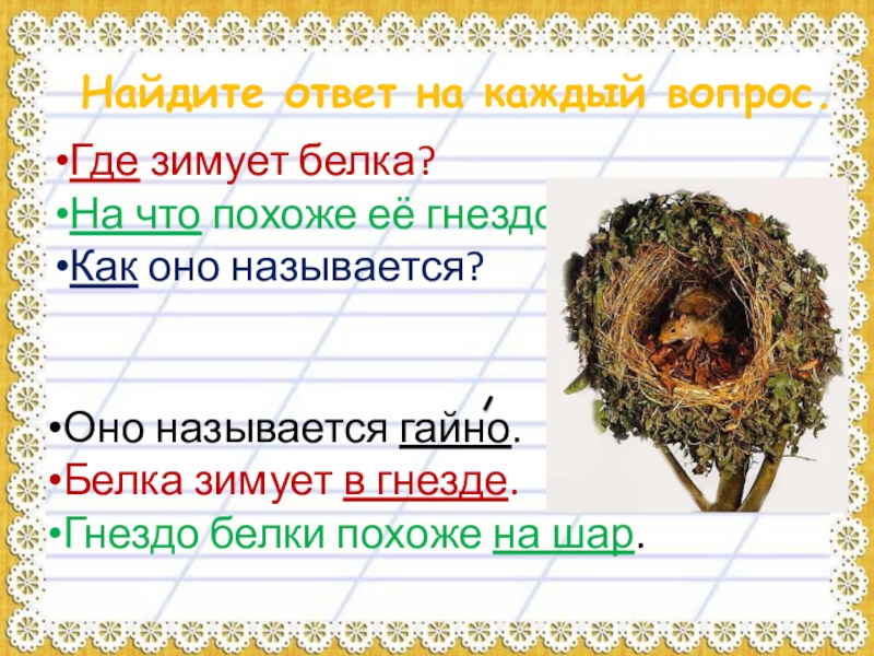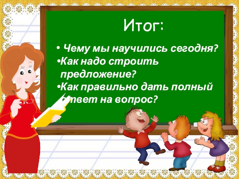 Вывод: слово-вопрос стоит в начале предложения, а слово-ответ – в конце; при составлении ответа используются слова вопроса.