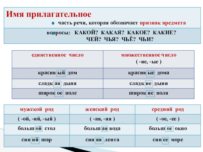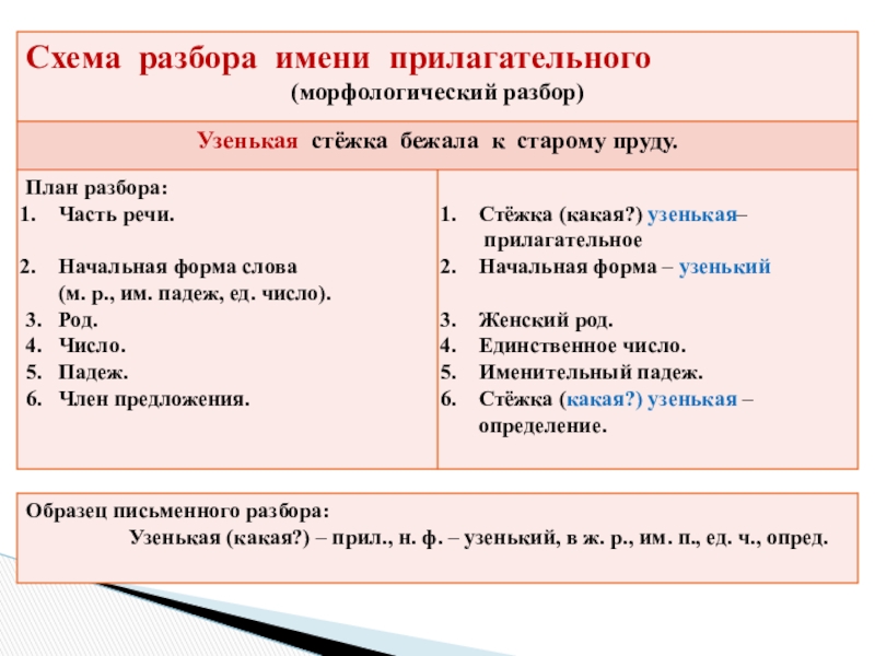 - Схема разбора прилагательного