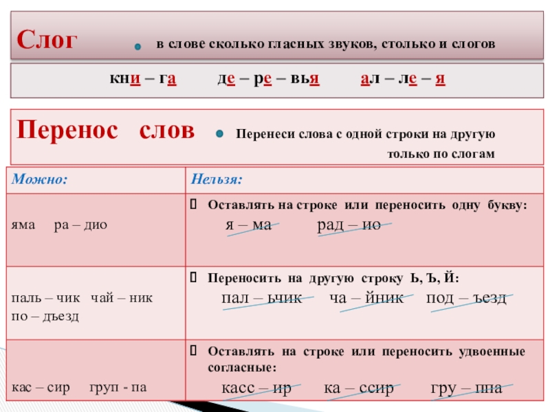 - Слог. Перенос слов