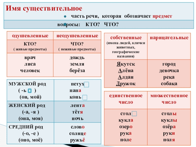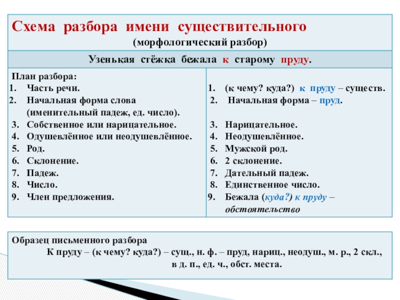 - Схема разбора существительного
