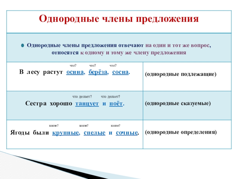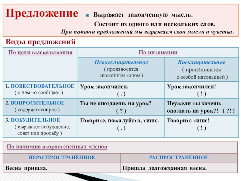 - Предложение (главные и второстепенные члены предложения; однородные члены предложения)