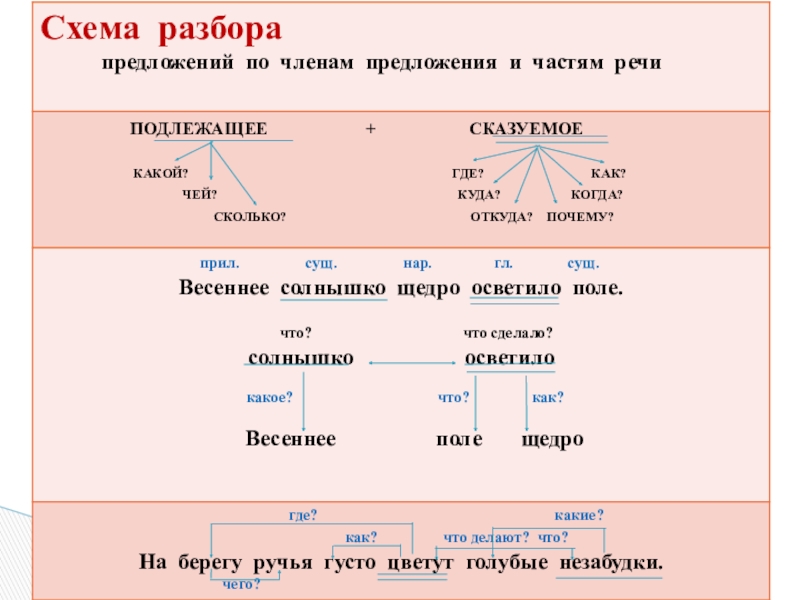 - Схема разбора предложений по членам предложения и частям речи