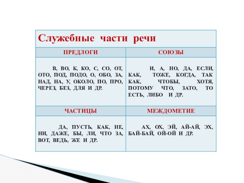 - служебные части речи