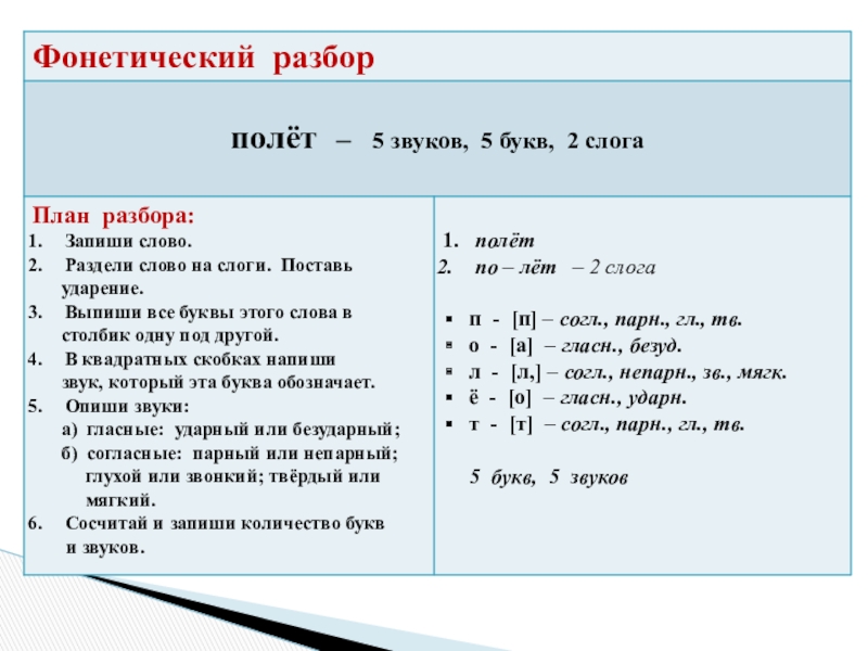 - Фонетический разбор слова