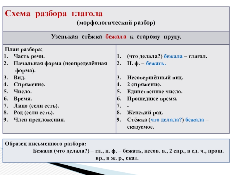 - Схема разбора глагола