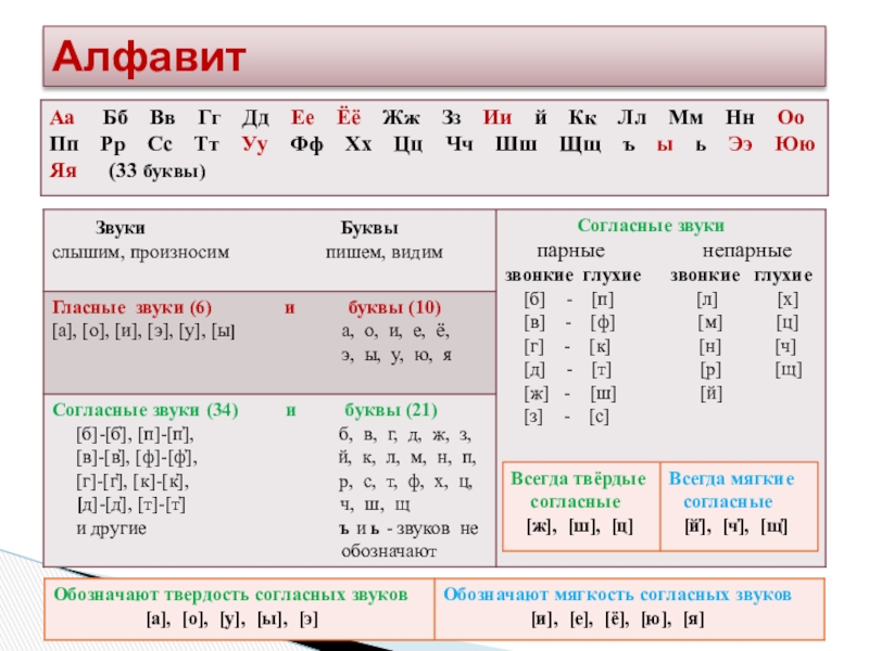 - Алфавит. Гласные и согласные звуки