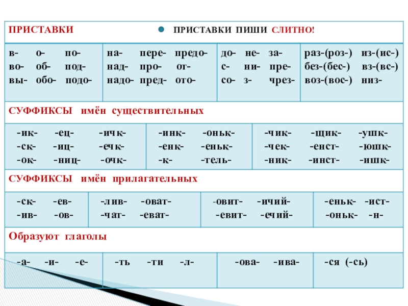 - Состав слова (приставки., суффиксы)