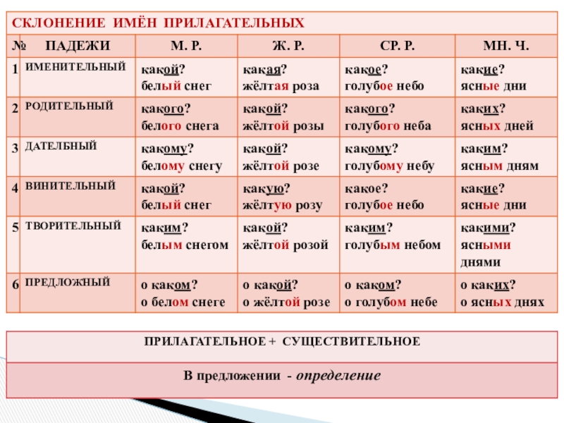 - имя прилагательное (склонение прилагательных)