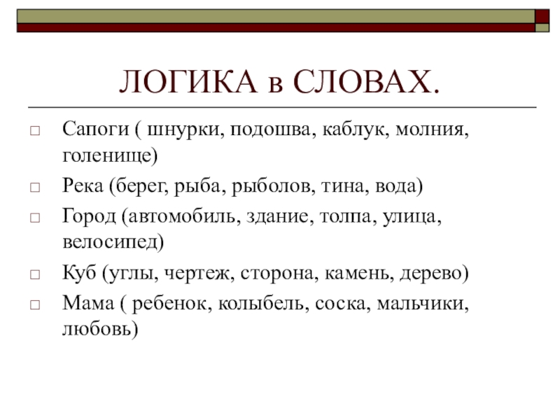 Слайд 12ЛОГИКА в СЛОВАХ.