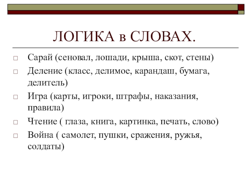 Слайд 11ЛОГИКА в СЛОВАХ.