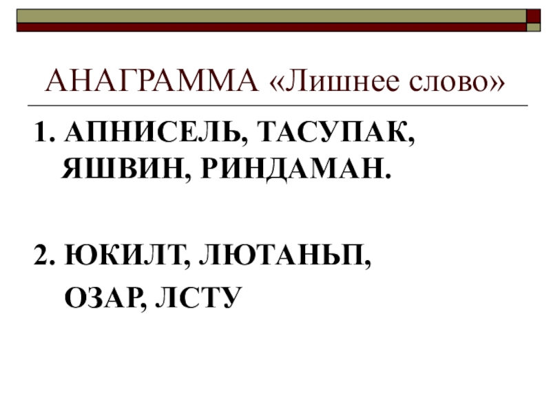 1. АПНИСЕЛЬ, ТАСУПАК, ЯШВИН, РИНДАМАН.