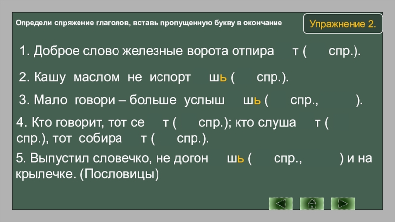 2. Кашу маслом не испорт ... шь ( ... спр.).