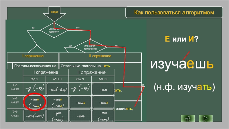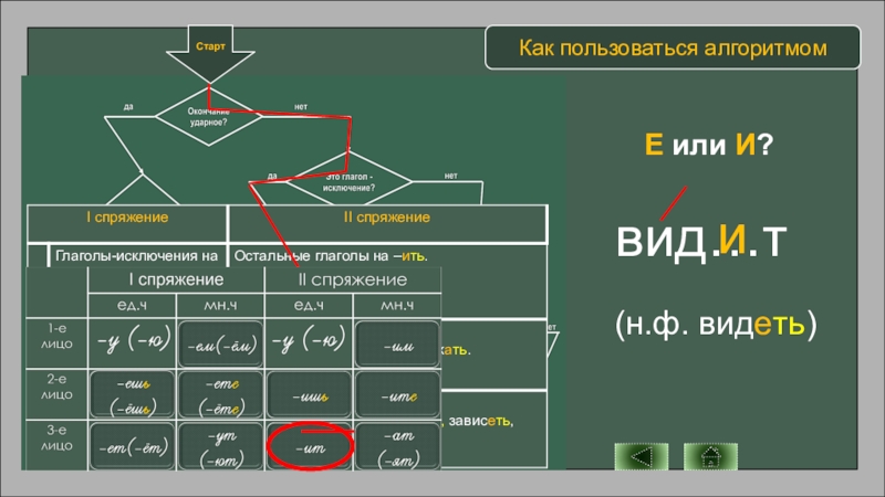 в окончаниях буква и, а в 3 л. мн.ч. –ат (-ят)