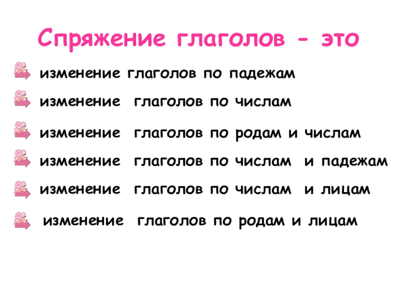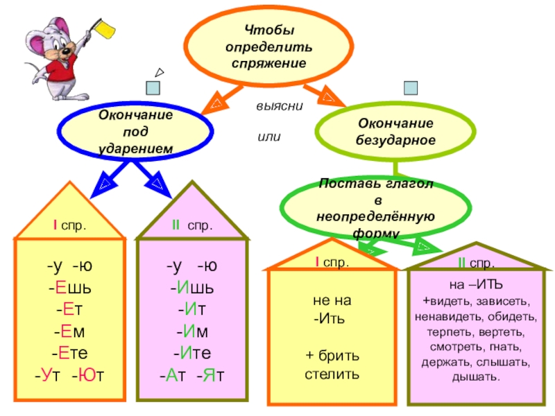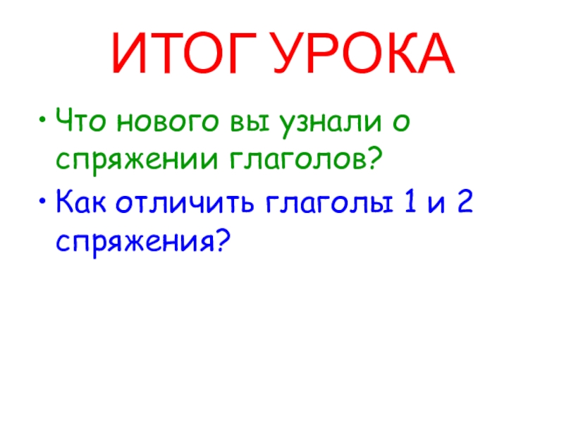 В русском языке два спряжения глаголов. Одни глаголы изменяются по лицам и числам по первому спряжению, а другие – по второму.