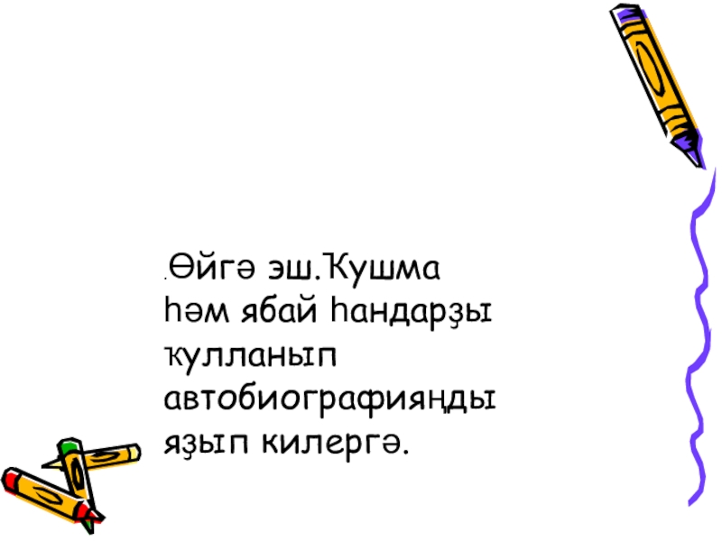 Слайд 14.Өйгә эш.Ҡушма һәм ябай һандарҙы ҡулланып автобиографияңды яҙып килергә.