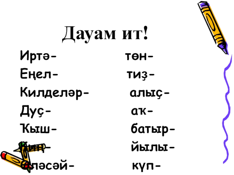 Дауам ит!Иртә-      төн- Еңел-      тиҙ-Килделәр-