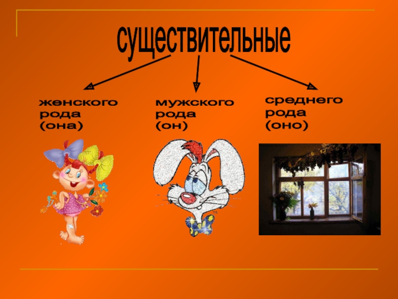 существительныеженского  рода  (она)мужского  рода  (он)среднего  рода  (оно)