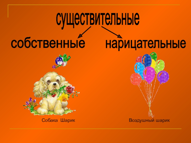 существительныесобственныенарицательныеСобака ШарикВоздушный шарик