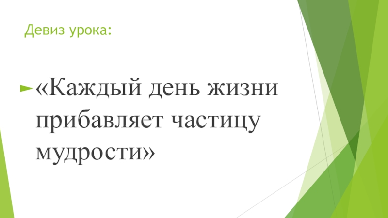 Девиз урока:«Каждый день жизни прибавляет частицу мудрости»