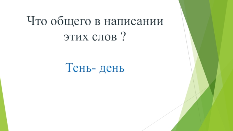 Слайд 17Что общего в написании этих слов ? Тень- день